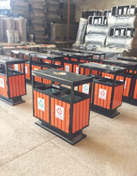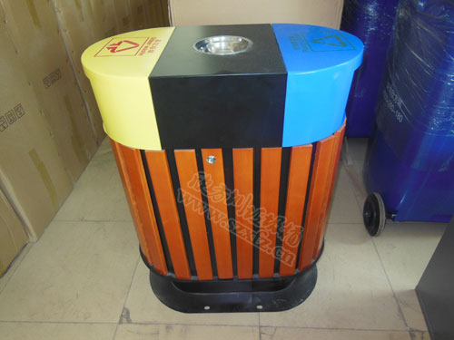 這是峨眉山旅游區訂購欣方圳的一款G75戶外鋼木分類垃圾桶,規格為685*400*900mm,桶蓋部分采用鋼板焊接成型,桶身部分采用仿木工藝的鋼木材質,配鍍鋅內膽,經除銹噴塑烤漆等一系列工藝使這款鋼木垃圾桶能經歷日曬雨淋不褪色、防腐、不生銹的一款經典鋼木垃圾桶。其位于用在旅游景區,既體現了我們這款戶外鋼木桶更適用景區,又彰顯我們欣方圳垃圾桶的高規格品質。